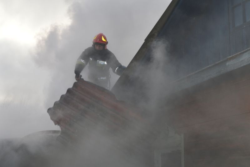Из-за сильных порывов ветра возникла угроза распространения пламени на крышу и другие комнаты дома.