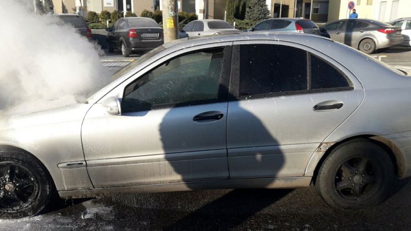 По прибытию спасатели установили, что горит моторный отсек легкового автомобиля «Mercedes-Benz».