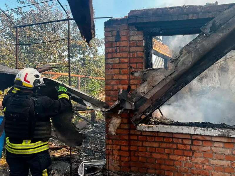 В результате обстрела был разрушен жилой одноэтажный дом. Огонь охватил разрушенные конструкции дома на площади 100 кв.м.