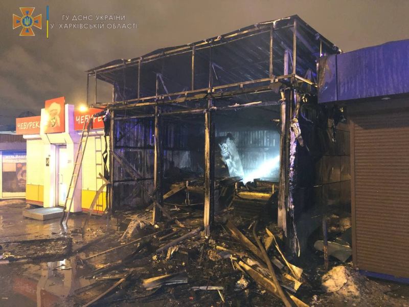 9 февраля в 23:40 на номер "101" поступило сообщение о пожаре в торговом объекте (малая архитектурная форма) по продаже мясных изделий по адресу: г. Харьков, ул. Лосевская, 53.