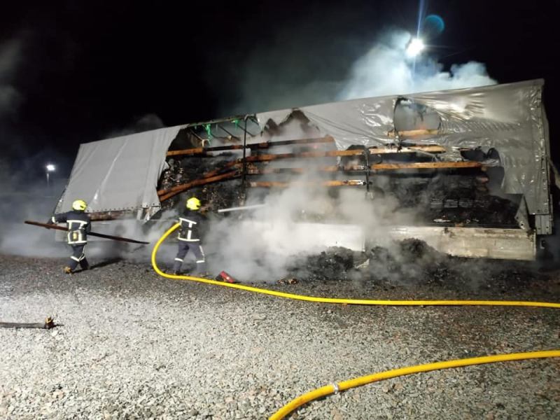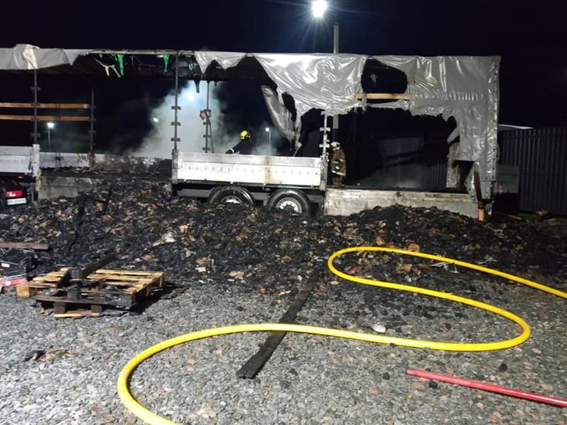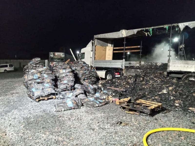 Огнем уничтожен полуприцеп и 16 тонн древесного угля. Жертв и пострадавших нет.