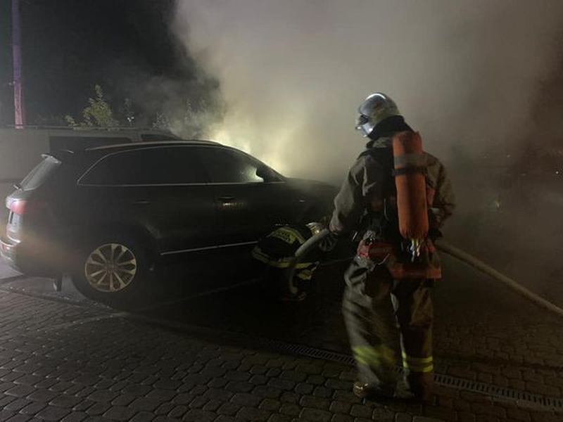 Огнем повреждено лакокрасочное покрытие, лобовое стекло, зеркала и моторный отсек автомобиля Audi Q5. На другую машину огонь не перекинулся.