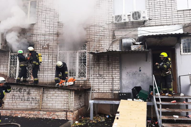 Прибувши за вказаною адресою рятувальники встановили, що займання виникло всередині складського приміщення, яке розташоване на першому поверсі трьохповерхової будівлі, що розміщена впритул до дев’ятиповерхового житлового будинку.