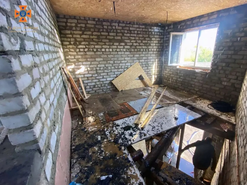 Вогнем пошкоджено дах споруди та будівельні матеріали всередині. Загальна площа пожежі становить 45 кв. м.