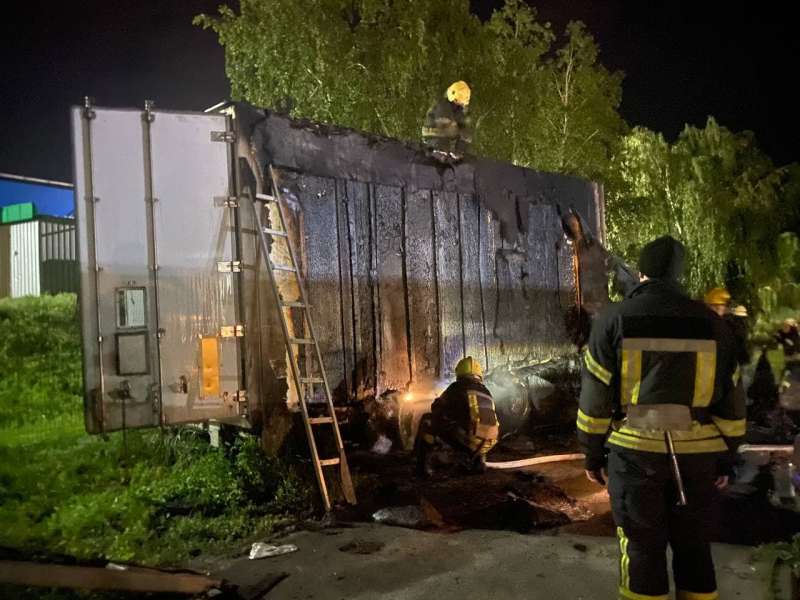 Внаслідок пожежі пошкоджено праву частину причепу.