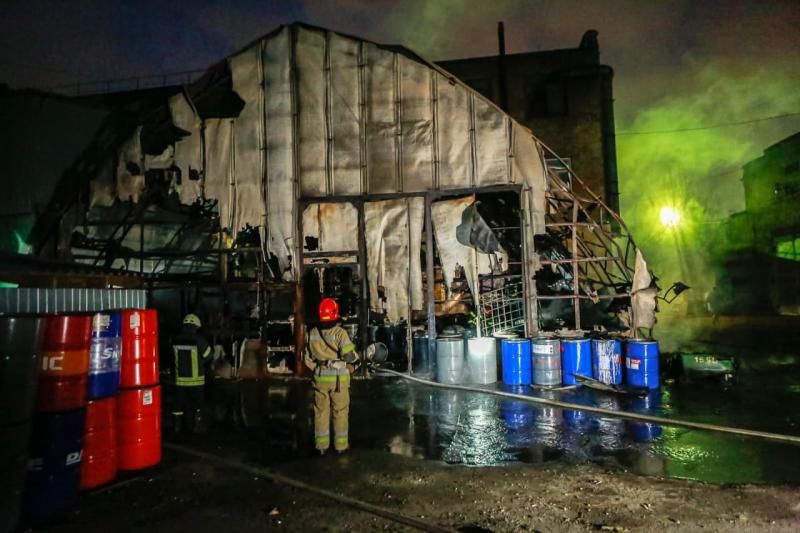 На місце події одразу ж було направлено чергові відділення з найближчих пожежно – рятувальних підрозділів. Прибувши до місця виклику, рятувальники встановили, що сталося загоряння сміття з розповсюдженням вогню на поруч розташовану складську будівлю розміром 10×15 м з тарою від олії (металеві бочки). Не гаючи часу, вогнеборці відразу ж приступили до гасіння пожежі.