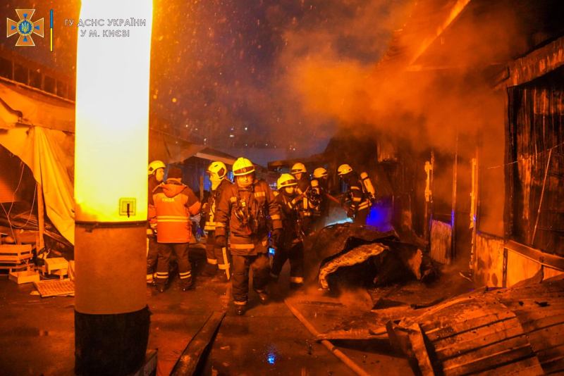Внаслідок пожежі 8 торговельних павільйонів знищено вогнем та 22 вогнеборцям вдалось врятувати.