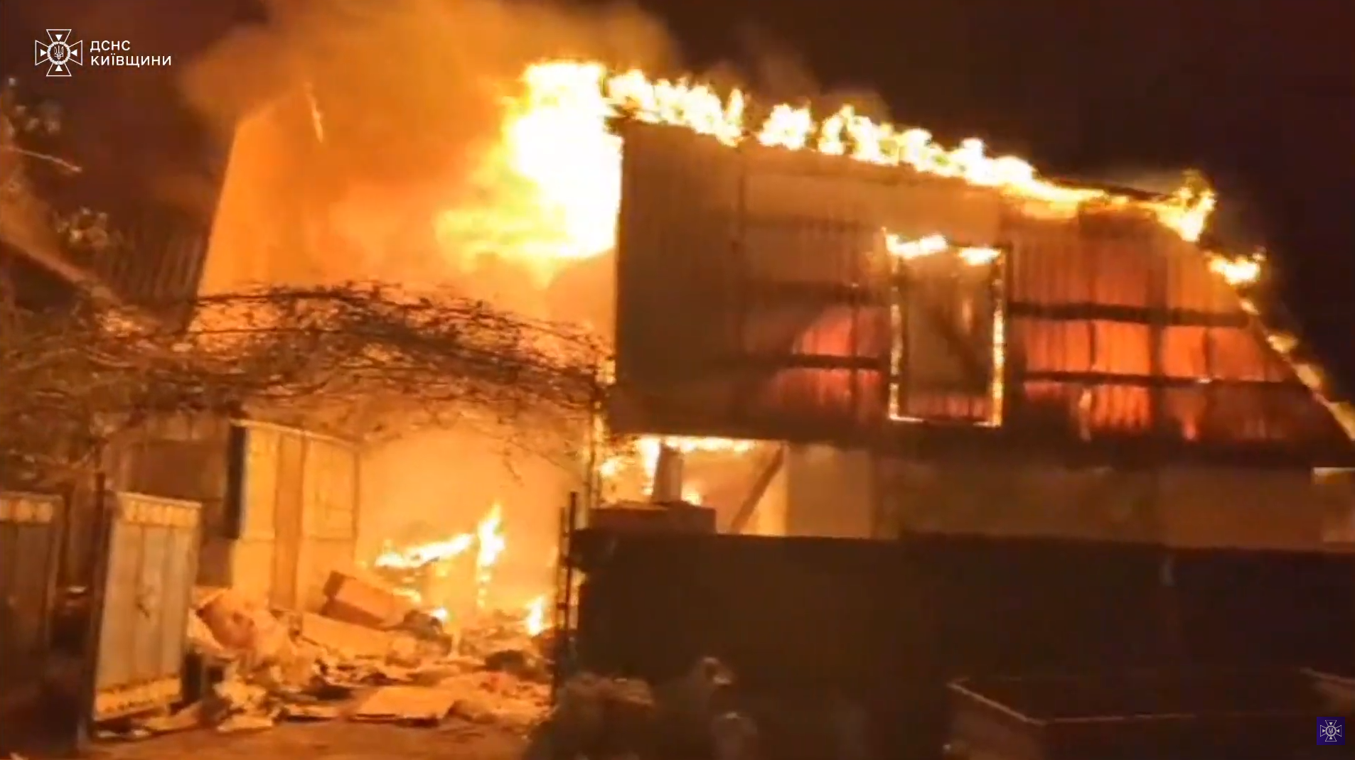 Пожежу ліквідовано о 20:30 на площі 160 кв.м Знищено господарчу будівлю та гараж по всій площі.