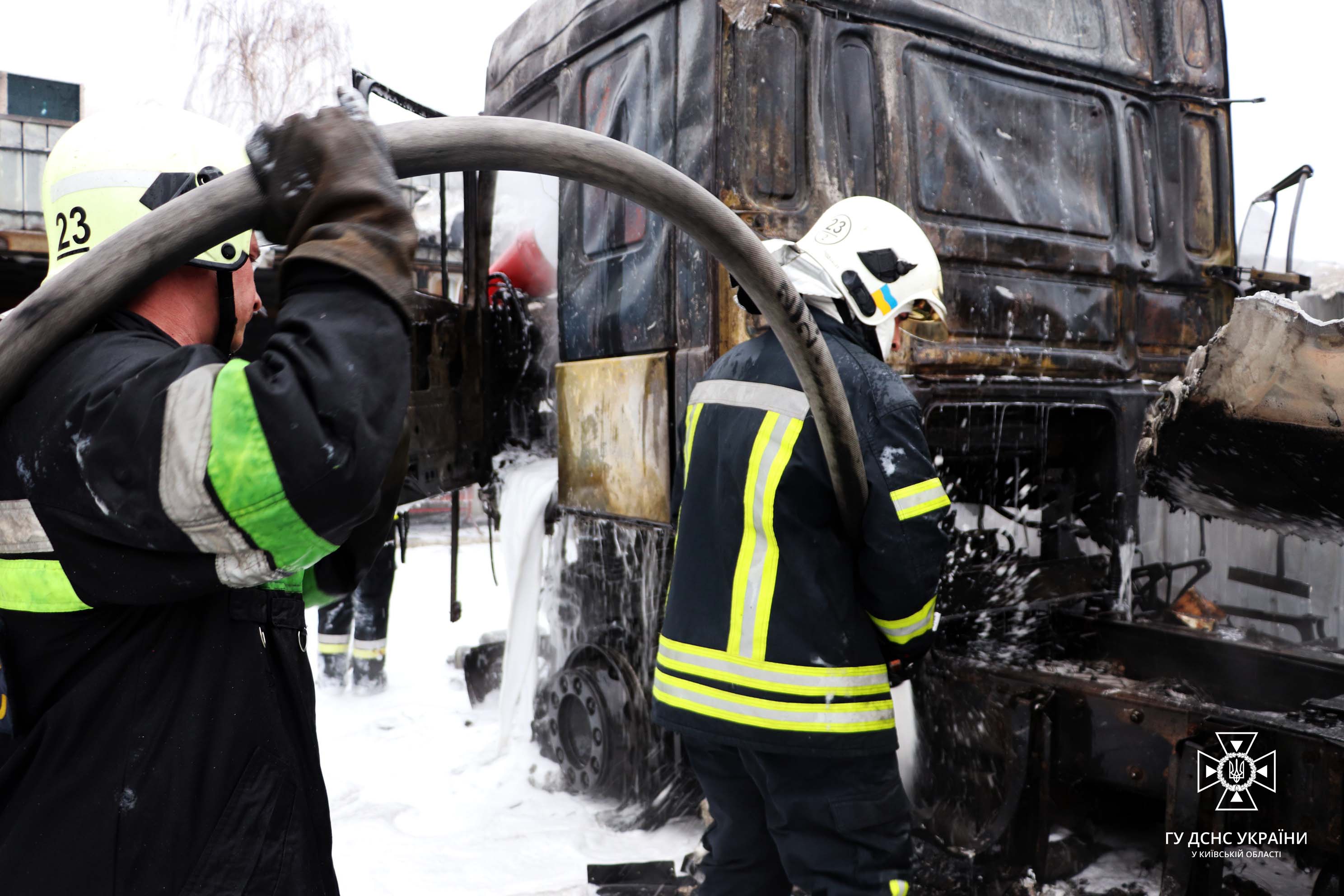 До місця пожежі виїхав черговий караул 23-ї Державної пожежно-рятувальної служби м. Бориспіль. По прибуттю на місце було встановлено, що сталося загорання тягача DAF XF 105, який перебував на стоянці АЗС та існує загроза розповсюдження вогню на будівлю АЗС.