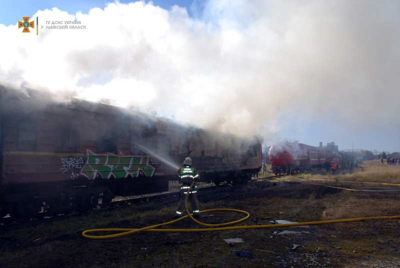 29 жовтня о 12:28 до Служби порятунку «101» надійшло повідомлення про пожежу в м. Львові на вул. Городоцькій. Пожежа виникла в одному з двох окремо стоячих вагонів, які знаходились на запасній колії у відстійнику без електропостачання.