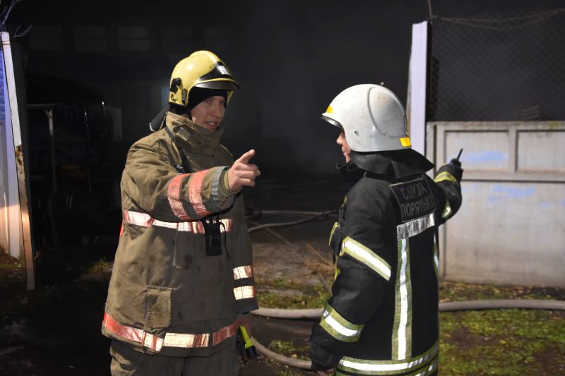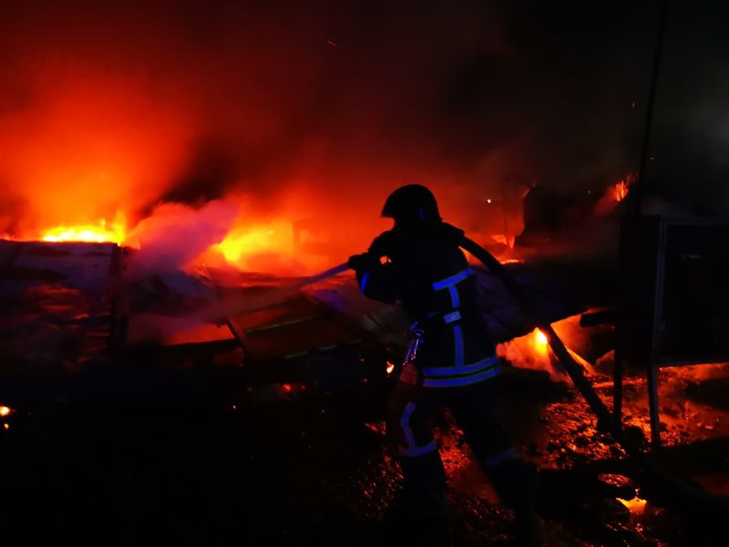 О 04:12 на місце виклику прибули перші пожежно-рятувальні підрозділи та встановили загорання відкритим полум’ям у металевому ангарі.