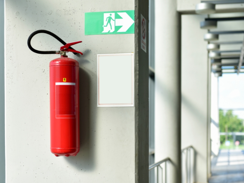 - Вони повинні добре переглядатися, бути доступними, розташовуватися у відведених місцях – на стінах, підставках, підлозі, в пожежних щитах/шафах неподалік можливих вогнищ вогню, а також вздовж шляхів евакуації, біля виходів з пожежних відсіків, зон секцій, приміщень. При цьому не заважаючи людям залишати будинок, у тому числі повністю відчиняти будь-які двері в ньому.