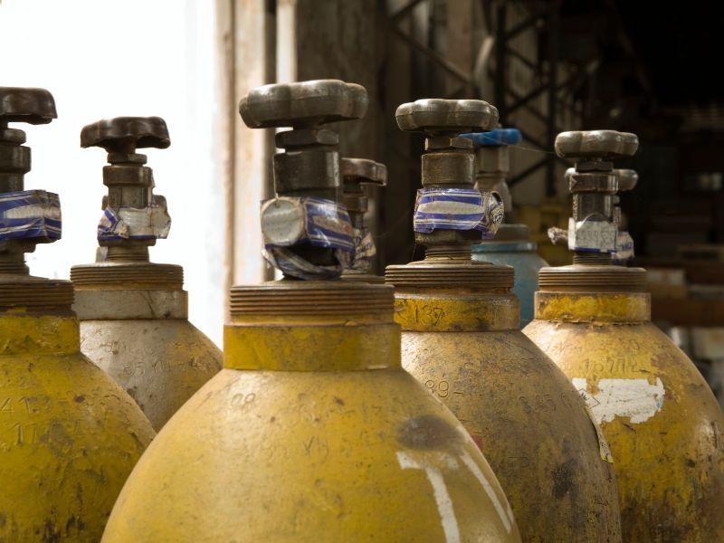приєднувати деталі газової арматури за допомогою іскроутворювального інструменту; зберігати запасні балони.