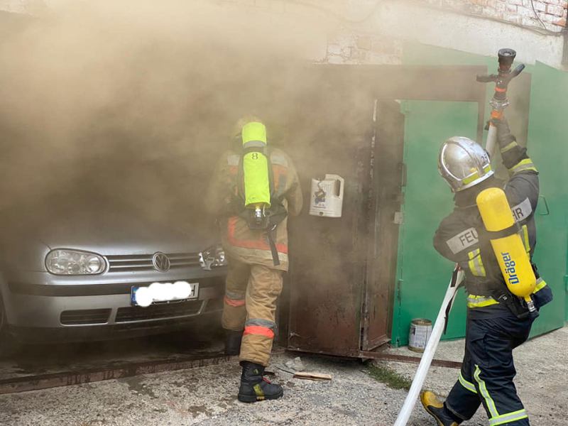 Прибувши за вказаною адресою рятувальники за допомогою спеціального обладнання відкрили двері автогаража, де горіла машина марки Volkswagen Golf. На гасіння було подано вогнегасні речовини, автомобіль відкочено з гаража.