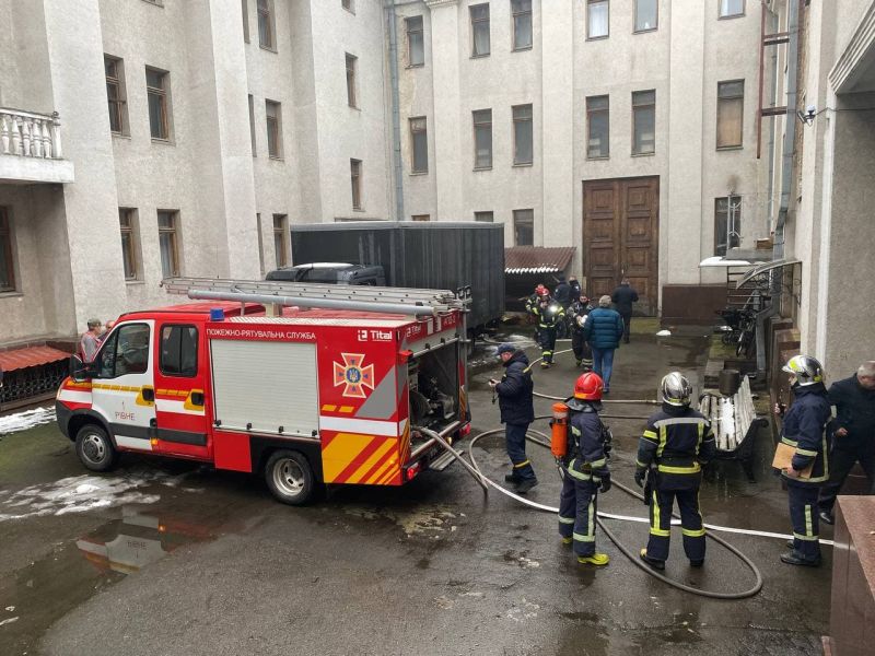 04 лютого о 13:38 на спецлінію "101" надійшло повідомлення про загоряння в підвальному приміщенні механічної майстерні Рівненського академічного українського музично-драматичного театру в місті Рівне по вулиці Театральній.
