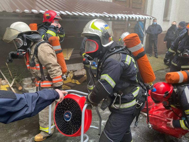 Через сильне задимлення рятувальники працювали в апаратах захисту органів дихання та зору.