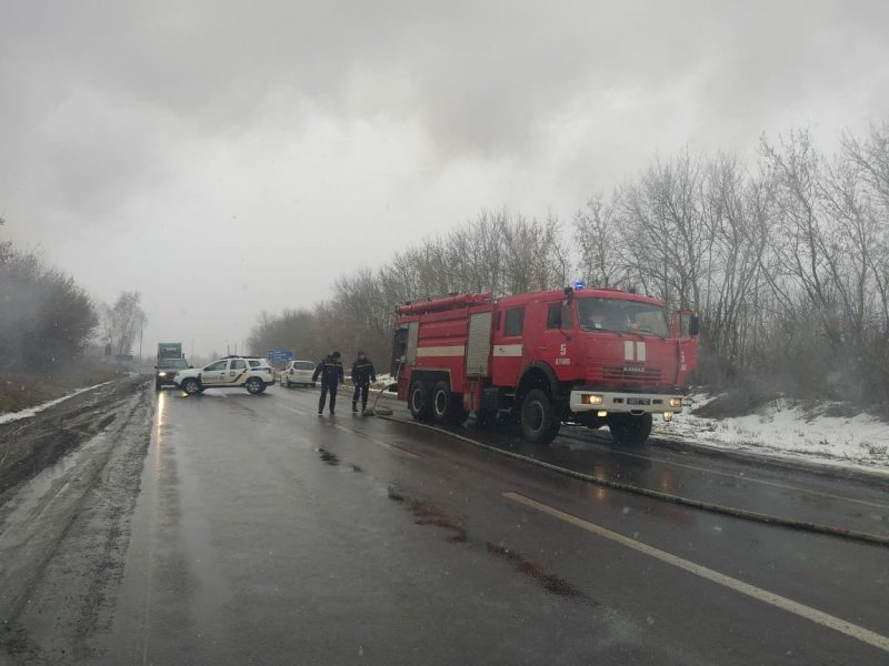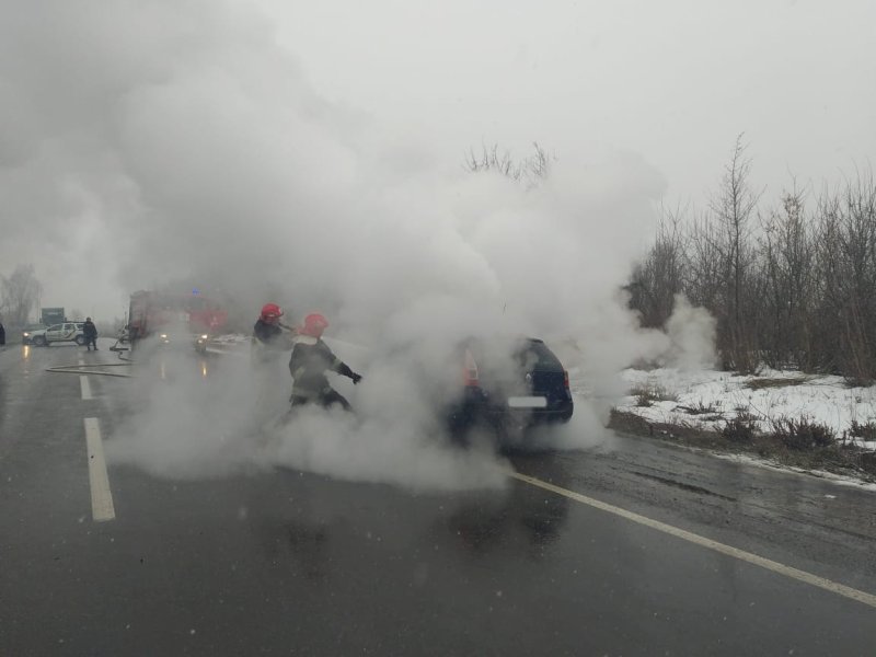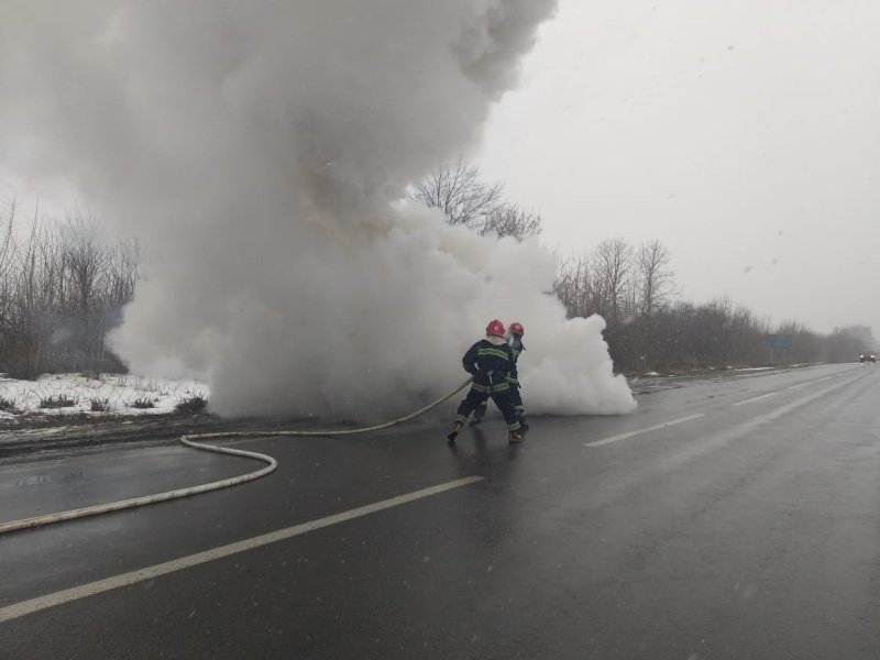 Прибувши на місце виклику вогнеборці подали на ліквідацію вогнегасні речовини. Внаслідок загоряння вогнем знищено моторний відсік та передню частину автомобіля.