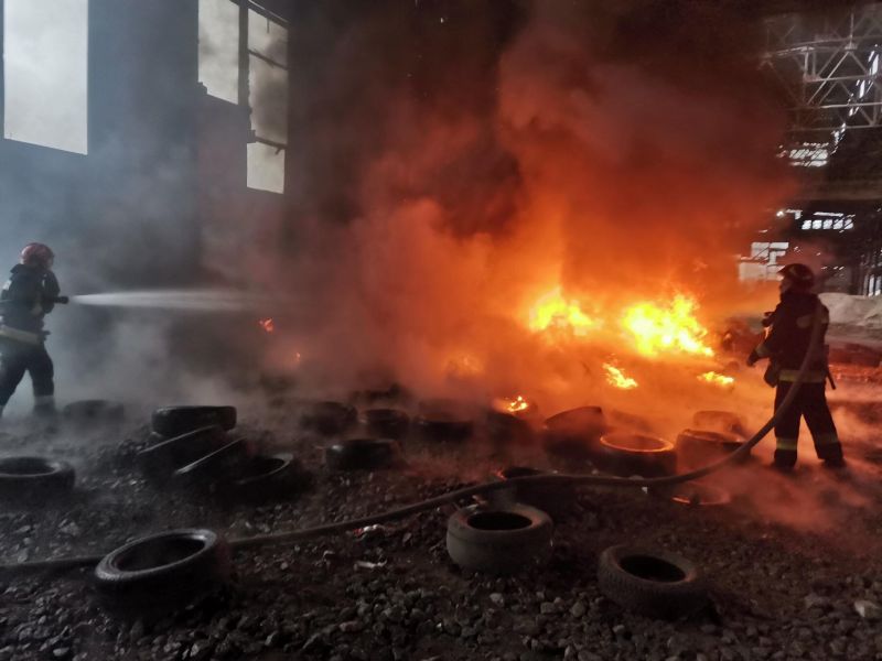 По прибуттю на місце події рятувальників ДПРЧ-2 та НПРЧ ЛДУ БЖД з'ясувалося, що вогнем охоплено автомобільні шини на території підприємства.