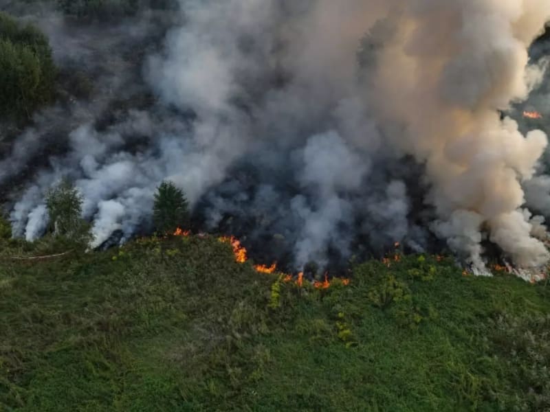 В 19:30 пожар локализовали, однако ликвидация еще продолжается из-за тления торфяных залежей.