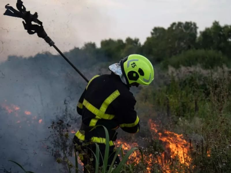 Уведомление о пожаре в с. Бортничи поступили 4 сентября в 17:24. На открытой территории загорелся травяной настил и камыши.
